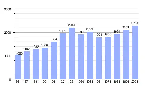 Gráfica de evolución demográfica de Solferino entre 1861 y 2001 |