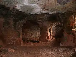 Los difuntos gozaban del privilegio de ser enterrados en cuevas talladas en la roca. Estas cuevas eran formadas por una entrada, una antecámara y finalmente la cámara sepulcral, los cadáveres se depositaban sobre una especie de banco corrido o en las hornacinas trabajadas en la roca, después serían cerradas con una gran losa reforzada con cuñas de madera.