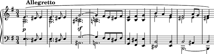 Beethoven, Sonata para piano en Mi mayor, Op. 14 Núm. 1, 2.º movimiento, barras 1@–8 |