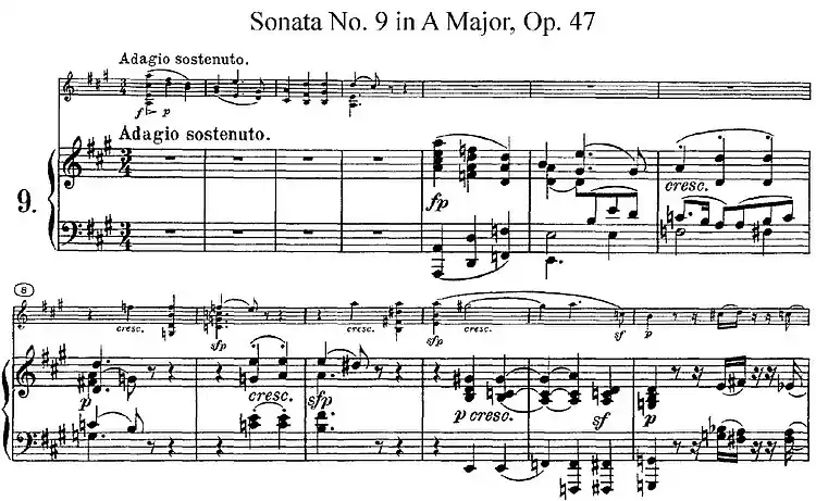La Sonata para violín y piano n.º 9 en la mayor, comúnmente conocida como la Sonata a Kreutzer, fue compuesta por Ludwig van Beethoven y publicada como su Opus 47 en 1802. Es notable por su exigente parte de violín, por su duración inusual (una ejecución típica dura poco menos de 40 minutos) y por su alcance emocional - mientras el primer movimiento es predominantemente furioso, el segundo es más contemplativo y el tercero alegre y exuberante.