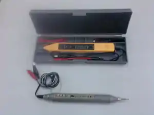 En la rama Automotriz se utiliza una variante de este instrumento,calibrado para realizar lecturas alrededor de los 12 o 24 voltios,en Latinoamérica y países hispanos se le denomina indiferentemente como sonda o punta lógica,pero no debe confundirse con la anterior,ya que este último instrumento simplemente reemplaza a las antiguas lámparas de prueba,aunque algunos modelos indican efectivamente polaridad,esto se mide en circuitos de altos voltajes,diferentes a los estándares existentes en electrónica digital.