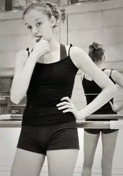 - Varias componentes de la selección nacional realizando un equilibrio en posición de attitude.