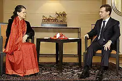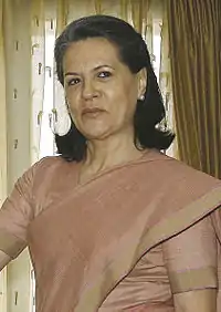 Sonia Gandhi (सोनिया गांधी en hindi, nacida Edvige Antonia Albina Maino; Lusiana, Vicenza, Italia, 9 de diciembre de 1946) es una política india de origen italiano, que ejerció como presidenta del Partido del Congreso, uno de los partidos políticos más poderosos de la India. Fue esposa de Rajiv Gandhi, primer ministro de la India perteneciente a la familia Nehrú-Gandhi, quien también lideró el mismo partido político. Actualmente es la líder y cabeza visible de dicha familia.