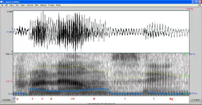 Desde los inicios de los estudios fónicos, se percibió una diferencia clara en los sonidos sonoros: “El espectro de las consonantes sonoras incluye formantes que son debidos a la fuente armónica. La manifestación más llamativa de la ‘sonoridad’ es la aparición de un fuerte componente grave que está representado por la barra de sonoridad a lo largo de la línea de base del espectrograma”.[7] En esta barra de sonoridad, además, encontramos unas estrías constantes en el eje temporal: el rastro de la abertura y cierre de los pliegues vocales.[6] Las estrías más oscuras corresponden a la fase de cierre glotal, que es el momento en que se inyecta más energía en el tracto vocal; los huecos entre las estrías, la abertura.