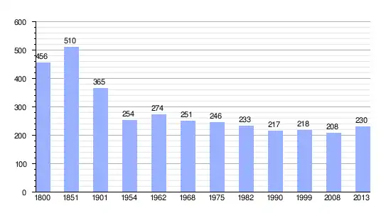 Los datos demográficos contemplados en este gráfico de la comuna de Sonneville[4] se han cogido de 1800 a 1999 de la página francesa EHESS/Cassini, y los demás datos de la página del INSEE.[5]