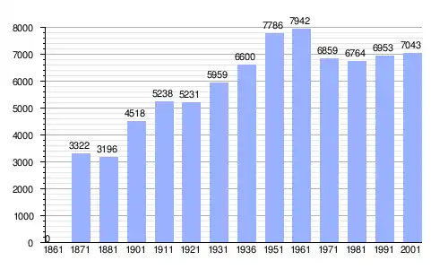 Gráfica de evolución demográfica de Sonnino entre 1861 y 2001 |