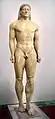 Guerrero del frontón occidental del Templo de Afaya en Egina, entre 510 a. C. y 470 a. C. (Gliptoteca de Múnich).