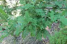 Es un árbol que puede alcanzar hasta 10 metros de altura, sus hojas son compuestas imparipinnadas, de foliolos más grandes que los de S. cassioides, pero más pequeños que los de S. macrocarpa.[2]