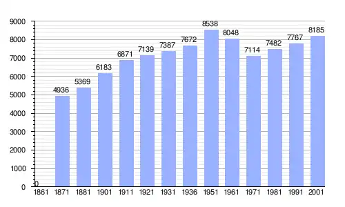 Gráfica de evolución demográfica de Soriano nel Cimino entre 1861 y 2001 |