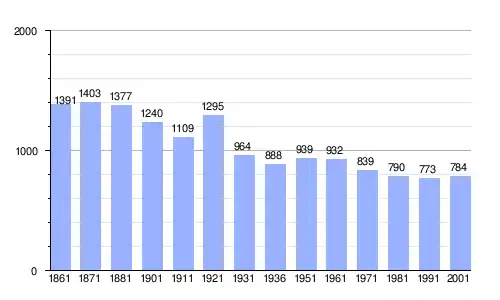 Gráfica de evolución demográfica de Sostegno entre 1861 y 2001 |
