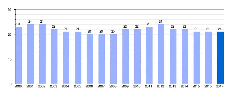 Gráfica de evolución demográfica de Sotillo de Rioja entre 2000 y 2017 |