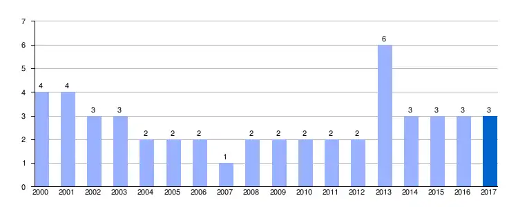 Gráfica de evolución demográfica de Soto de Bureba entre 2000 y 2017 |