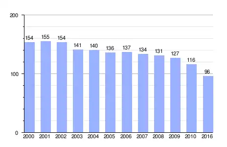 Población de derecho (2000-2016) según los censos de población del INE a 1 de enero de cada año.[4] |