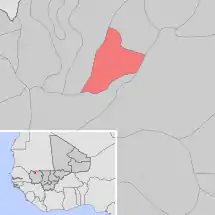 Se encuentra ubicada al oeste del país y al norte de la región de Kayes, en la zona climática del Sahel, cerca de la frontera con Mauritania y la región de Kulikoró.