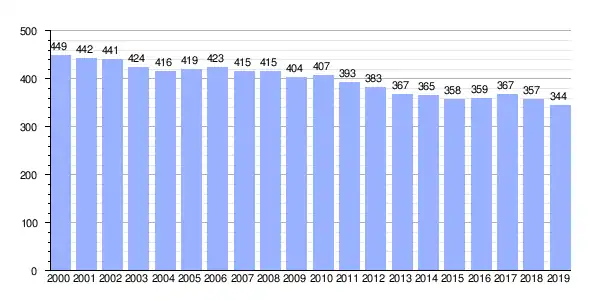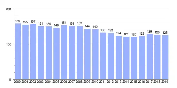 Gráfica de evolución demográfica de Souto (parroquia) entre 2000 y 2019 |