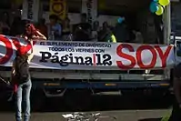 ![]() Camión del suplemento Soy en la Marcha del Orgullo LGBT en la ciudad de Buenos Aires. | ||
