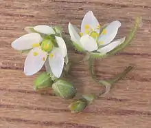 Spergula arvensis, llamada comúnmente esparcilla, es una especie de la familia de las cariofiláceas