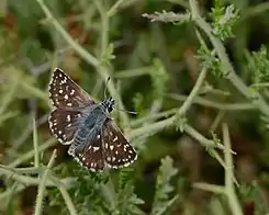 A veces ha sido tratada como subespecie de Spialia sertorius pero puede ser distinguido por el verde de oliva (más que rojizo-marrón) en sus alas posteriores.[2]