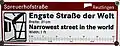 - Cartel indicador de la calle más angosta del mundo.
