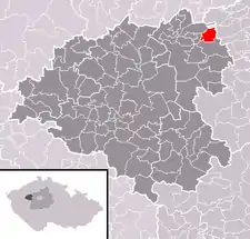 Se encuentra ubicada al noroeste de la región y de Praga, al sur del río Ohře (afluente del Elba), al norte del río Berounka (afluente del Moldava) y cerca de la frontera con las regiones de Pilsen y Ústí nad Labem.[1]