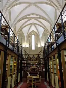 El Edificio Principal - la Trinity Santa anterior Convento qué estuvo construido en el 1860, alberga la biblioteca principal de la universidad, Gulbenkian Leyendo Habitación, y el ruso y Centro de Estudio europeo Del este.[11] Los holdings colectivos de la biblioteca principal y varias bibliotecas de centro comprenden encima 110,000 volúmenes, whilst suscripciones a actuales periodicals número aproximadamente 300. La biblioteca principal él aguanta encima 60,000 volúmenes y suscribe a encima 100 actual periodicals con las colecciones generales en historia moderna, política, economía y relaciones internacionales, las colecciones encima Europa, Asia, y el no-Slavonic colecciones encima Rusia, la URSS anterior y Europa Oriental. Lo También alberga algunos archivo de 20.º siglos colecciones, incluyendo el Wheeler-Bennett papeles. St Antony es está asociado con el Oxford Sistema de Información de las Bibliotecas (OLIS), y ha sido un colaborador al catálogo de biblioteca de unión en línea de la universidad desde entonces 1990.