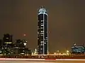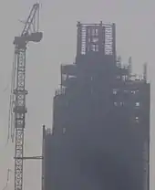 En octubre de 2011 el núcleo de hormigón había alcanzado la planta 22. La construcción del muro cortina de cristal empezó en septiembre de 2011, y las dos primeras plantas se completaron en octubre. En marzo de 2012 el núcleo había superado la planta 44. En octubre de 2012, el acero y el núcleo habían alcanzado su altura máxima, y empezó la instalación de la turbina eólica. En este momento, el acristalamiento iba unas pocas plantas por debajo de la cima de la torre.