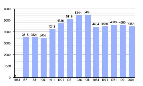 Gráfica de evolución demográfica de Stanghella entre 1861 y 2001 |