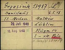 Tras el estallido de la segunda guerra mundial, mientras vivía en Varsovia, formó parte de la lucha contra los ocupantes alemanes nazis, a través de las denominadas Fuerzas Armadas Polacas, en la división Subterránea. Buscado por la Gestapo alemana por posesión de armas (probablemente resultado de una denuncia anónima), fue arrestado durante una redada y enviado a trabajos forzados en Alemania, en las cercanías de Coblenza. Posteriormente, fue destinado y enviado al Campo de concentración de Dachau por golpear a soldados alemanes e intentar escapar de los trabajos forzados impuestos.