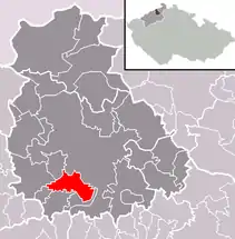 Se encuentra ubicada al noreste de la región, sobre los montes Metálicos, cerca de la orilla de los ríos Bílina y Elba, y del estado alemán de Sajonia.[1]