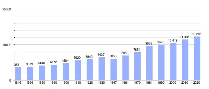 Todos los datos históricos relativos al actual municipio, el siguiente gráfico refleja su evolución demográfica, incluyendo municipios después de efectuada la fusión el 1 de enero de 1977.