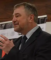 ![]() Stefan Rinke durante la entrega del Premio de Investigación “José Antonio Alzate” en 2003 en México. | ||