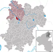 Se encuentra ubicado al noreste del estado, cerca de la orilla derecha del río Rin, de la orilla norte del río Lahn, y de la frontera con el estado de Hesse.