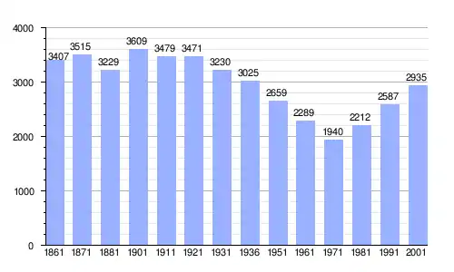 Gráfica de evolución demográfica de Stella entre 1861 y 2001 |