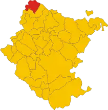 Ubicación de la ciudad de Stia dentro de la provincia de Arezzo .