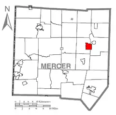 ![]() Ubicación en el condado de Mercer ![]() Ubicación del condado en Pensilvania ![]() Ubicación de Pensilvania en EE. UU. | ||