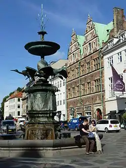 La Storkespringvandet [1] se encuentra en Amagertorv en el centro de Copenhague, la ciudad capital del país europeo de Dinamarca. Fue un regalo para el príncipe heredero Federico (posteriormente Federico VIII) y para la princesa Luisa, en ocasión de sus bodas de plata en 1894. Representa tres cigüeñas a punto de partir.