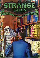 La fantasía y la ficción sobrenatural habían aparecido a menudo en las revistas populares antes del siglo XX, pero la primera revista en especializarse en el género, Weird Tales, apareció en 1923 y ya por los años 1930 era la líder de la industria del género.[1] Strange Tales, lanzada en 1931 por William Clayton con la intención de rivalizar con Weird Tales, fue una más del puñado de revistas nacidas para desafiar su liderazgo del campo.[2] Fue editada por Harry Bates, quien también editó otra revista de Clayton, Astounding Stories of Super-Science, que había comenzado a publicarse el año anterior.[1] Strange Tales se lanzó como una revista de fantasía pero, al igual que Weird Tales, a menudo también publicó historias de ciencia ficción,[1][3] aunque, a diferencia de su rival, su enfoque se orientó más hacia los relatos de acción que hacia las ideas extrañas.[4] Inicialmente se había pensado denominar Strange Stories, pero Macfadden Publications, que había publicado True Strange Stories en 1929, presentó una reclamación por el nombre y obligó a Clayton a cambiarlo.[5]