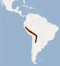 Este murciélago se distribuye desde Ecuador por el norte, a través del Perú y Bolivia hasta el noroeste de la Argentina.[7]