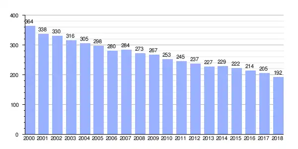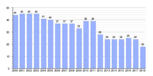 Gráfica de evolución demográfica de Suevos (parroquia) entre 2000 y 2018 |