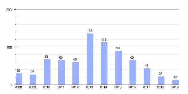 Gráfica de evolución de Deuda viva del Ayuntamiento de Suflí entre 2008 y 2019 |