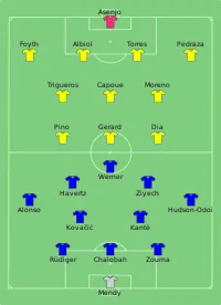 Finalmente el Chelsea F. C. ganaría el enfrentamiento 6:5 en penales después de haber quedado empatados 1:1 tras el tiempo suplementario, consiguiendo así su segunda Supercopa de la UEFA.[2]