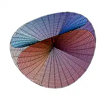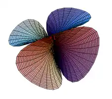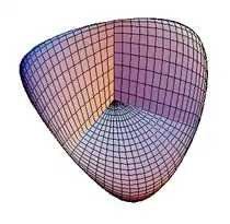 La construcción más simple es la imagen de una esfera centrada en el origen bajo la acción de la función . Esto lleva a la fórmula implícita: