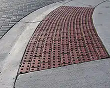 - Conjunto de domos amarillos truncados, en la rampa de acceso de un estacionamiento.