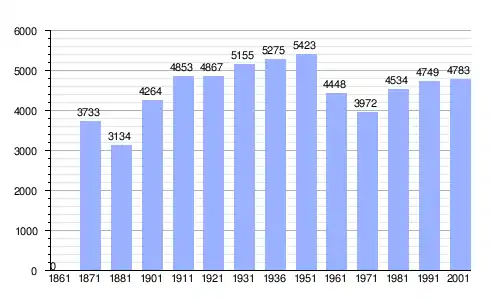Gráfica de evolución demográfica de Supino entre 1861 y 2001 |