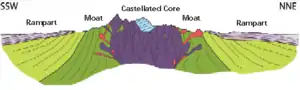 La pequeña cadena montañosa forma un círculo de aproximadamente unos 16 km de diámetro.[1]
