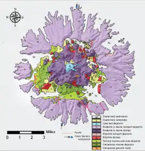Se formaron hace 1.6 millones de años a comienzos del Pleistoceno[3] mediante actividad volcánica. Los mismos son los restos de un volcán extinto[4] por unos 1.4 millones de años.[5] Algunos geónlogos sugiere que el volcán sería el extremo sur de los Volcanes Cascade, pero existen diferencias significativas en edad y forma comparados con otros volcanes de dicha cadena.[6] Otros son de la idea que su edad lo ubica con los elementos volcánicos de la cordillera costera de California; aunque su composición es más parecida a la de dichas montañas existen algunas diferencias significativas.