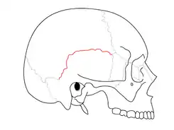 ![]() Vista lateral del cráneo. Sutura escamosa resaltada. | ||