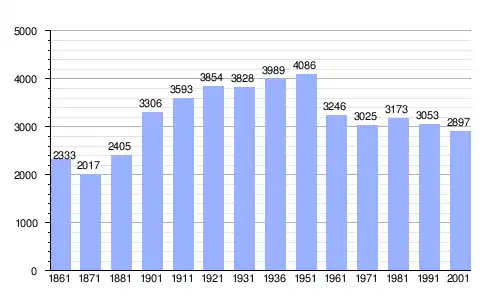 Gráfica de evolución demográfica de Suvereto entre 1861 y 2001 |