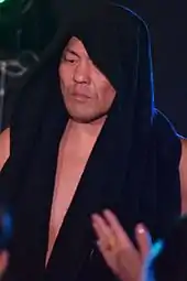 ![]() TAKA Michinoku con el logo oficial del stable. | ||