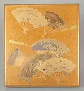 - Suzuri-bako del siglo XVII representando abanicos,en madera lacada de oro y plata.